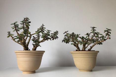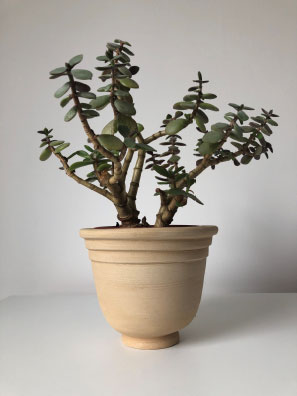 Topf aus gebranntem Ton (Terracotta), handgefertigt, hochwertig, schlicht, elegant, für Innen- und Aussenbereich geeignet.