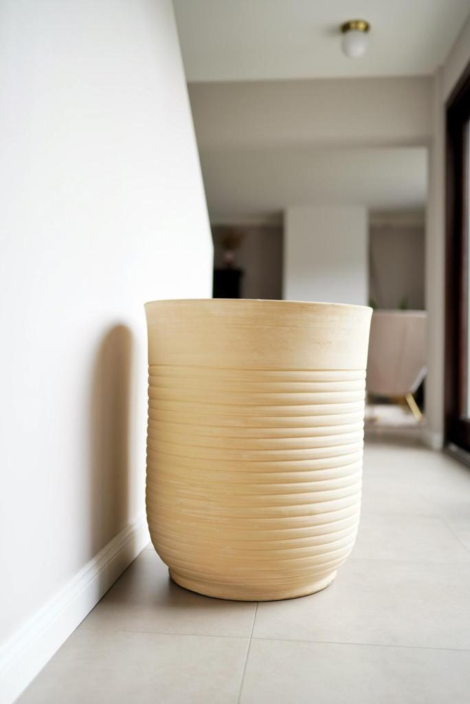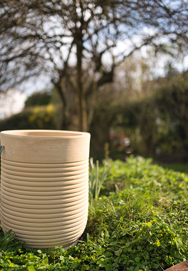 Topf aus gebranntem Ton (Terracotta), handgefertigt, hochwertig, schlicht, elegant, für Innen- und Aussenbereich geeignet.